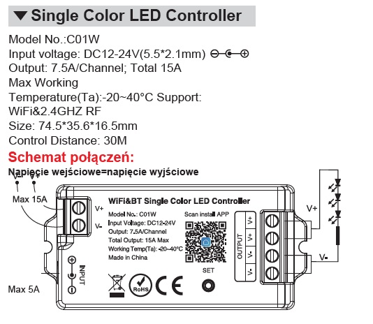 Kontroler sterownik do LED monokolor zdalne sterowanie smartfonem Smart Life