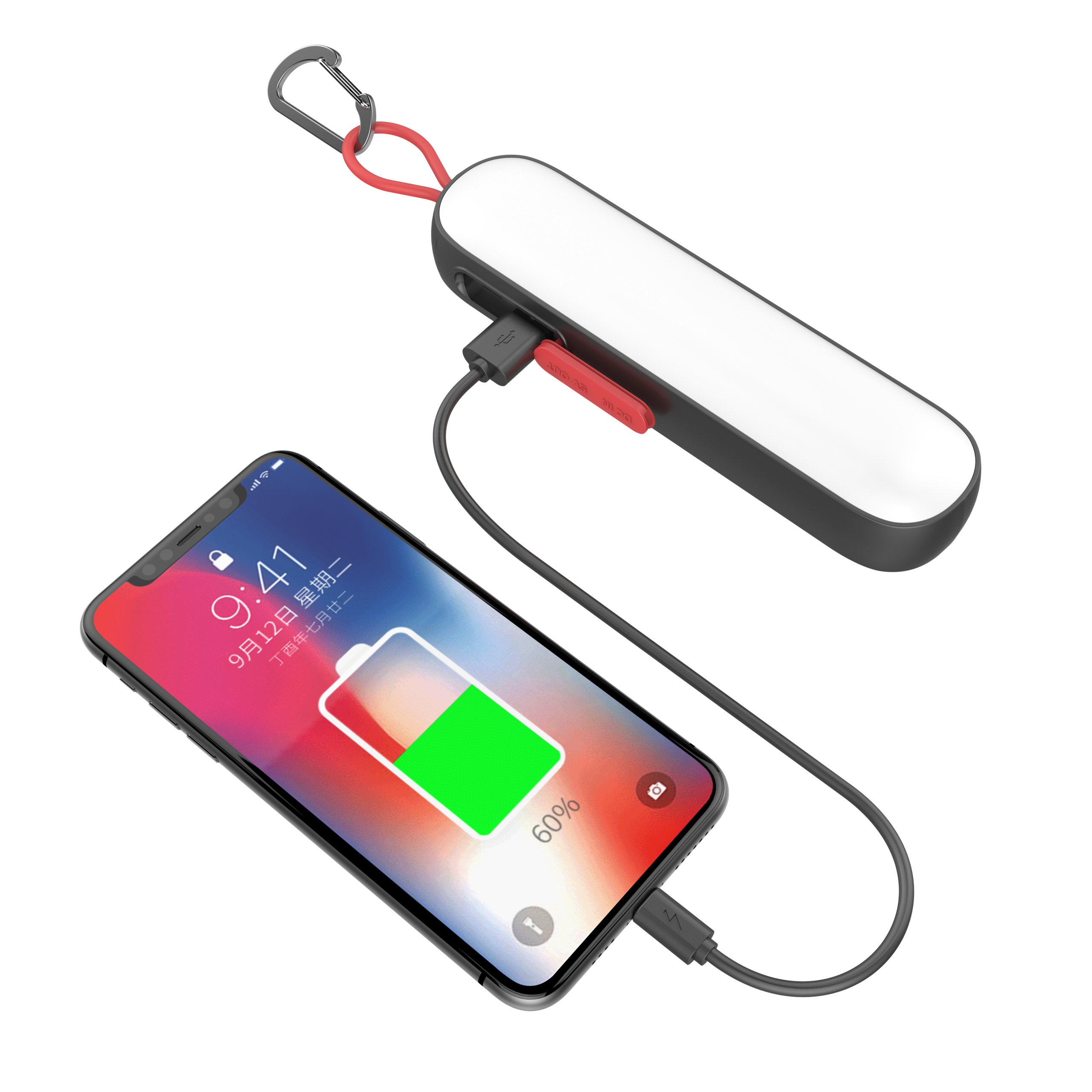 2. Ten produkt ma wbudowaną baterię litową o dużej pojemności. Włożenie kabla zasilającego USB do portu wyjściowego USB może zapewnić awaryjne ładowanie telefonu komórkowego lub tabletu; Podczas ładowania świeci się zielony wskaźnik. Gdy zielony wskaźnik miga, oznacza to, że wbudowana bateria jest niewystarczająca. Naładuj ją na czas. Podczas ładowania port zasilania awaryjnego zapewnia również moc wyjściową (obsługując ładowanie i rozładowywanie jednocześnie).